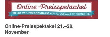 … nämlich eine ganze Woche lang (21.-28.11.2016) das Online-Preisspektakel mit Preisnachlässen