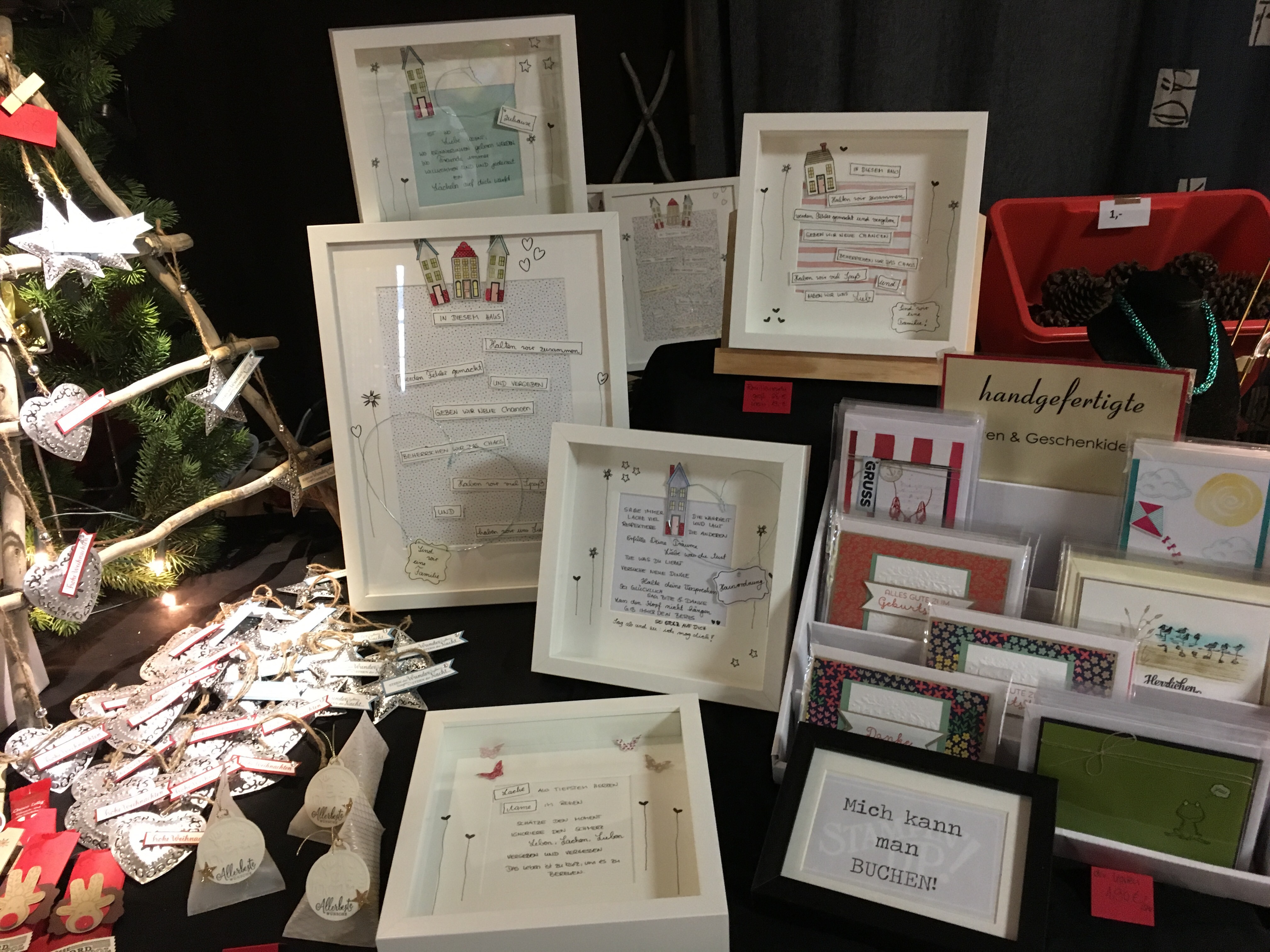Hier ein paar Bilder von den vergangenen beiden Weihnachtsmärkte, auf denen ich mit einer Freundin gebastelte Sachen verkauft habe.