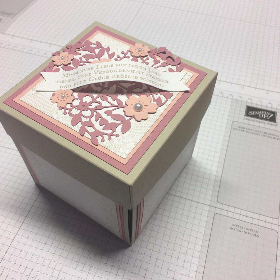 AllgemeinExplosionsbox zur Hochzeit 26. Februar 2017 Antje Motzkus-Wintjen Hier sehr ihr eine Auftragsarbeit, eine Explosionsbox anlässlich einer Hochzeit! Als Farben habe ich Kirschblüte, zarte Pflaume und Flüsterweiss gewählt! Teilen mit: Auf X teilen (Wird in neuem Fenster geöffnet) X Auf Facebook teilen (Wird in neuem Fenster geöffnet) Facebook Gefällt mir Wird geladen …