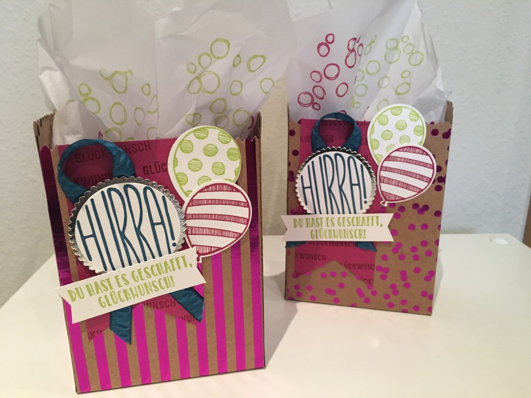 hier seht ihr zwei ganz schnell gezauberte Geschenktüten.