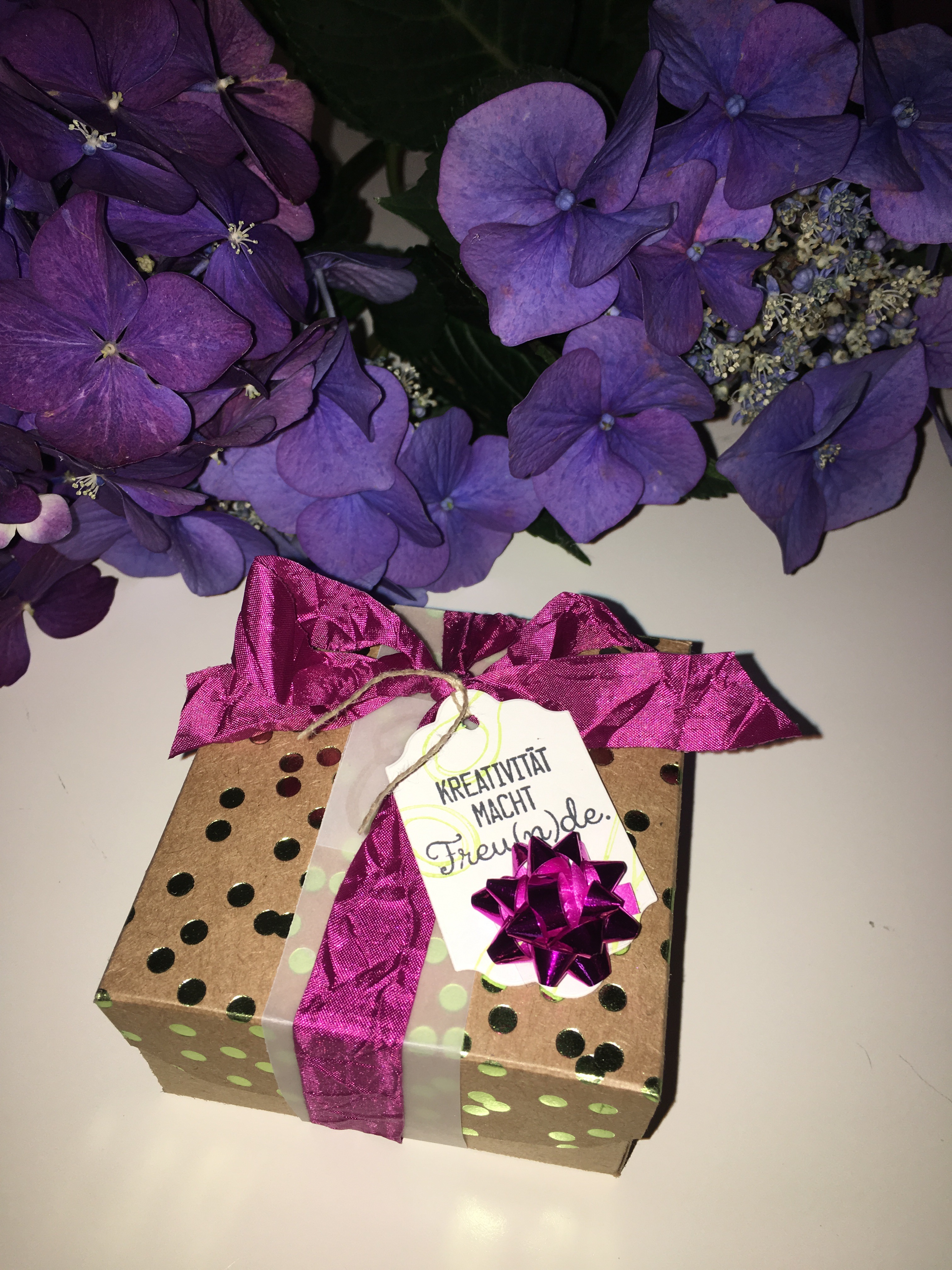 Hier eine kleine Idee für eine Geschenkverpackung! Dieses kleine Geschenke hat die Gastgeberin meiner letzten Stempelparty als Dank bekommen! Gefüllt ist sie mit Schokolade!