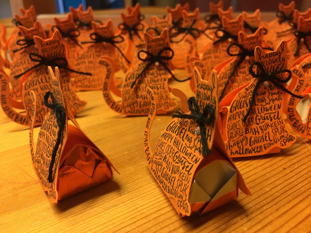 Am 10. und 11.11. findet in Mainz die diesjährige Onstage von Stampin’Up! statt. Hier erfahren wir Demonstratoren die neuen Produkte für den Frühling! Unglaublich, dass es dann schon so weit ist. Da auf den Onstage immer ganz viele verrückte Demonstratorinnen – das meine ich wirlich liebevoll – aufeinander treffen, wird auch dieses Jahr wieder „geswappt“, d. h. kleine gebastelte Sachen untereinander getauscht. Mein diesjähriger Swapp ist ein Ferrero-Küsschen, versteckt im Bauch der „Hokuspokus-Katze“. Ich freue mich schon auf die Swaps, die ich bekomme, man erhält nämlich immer viele Ideen für eigene Projekte.