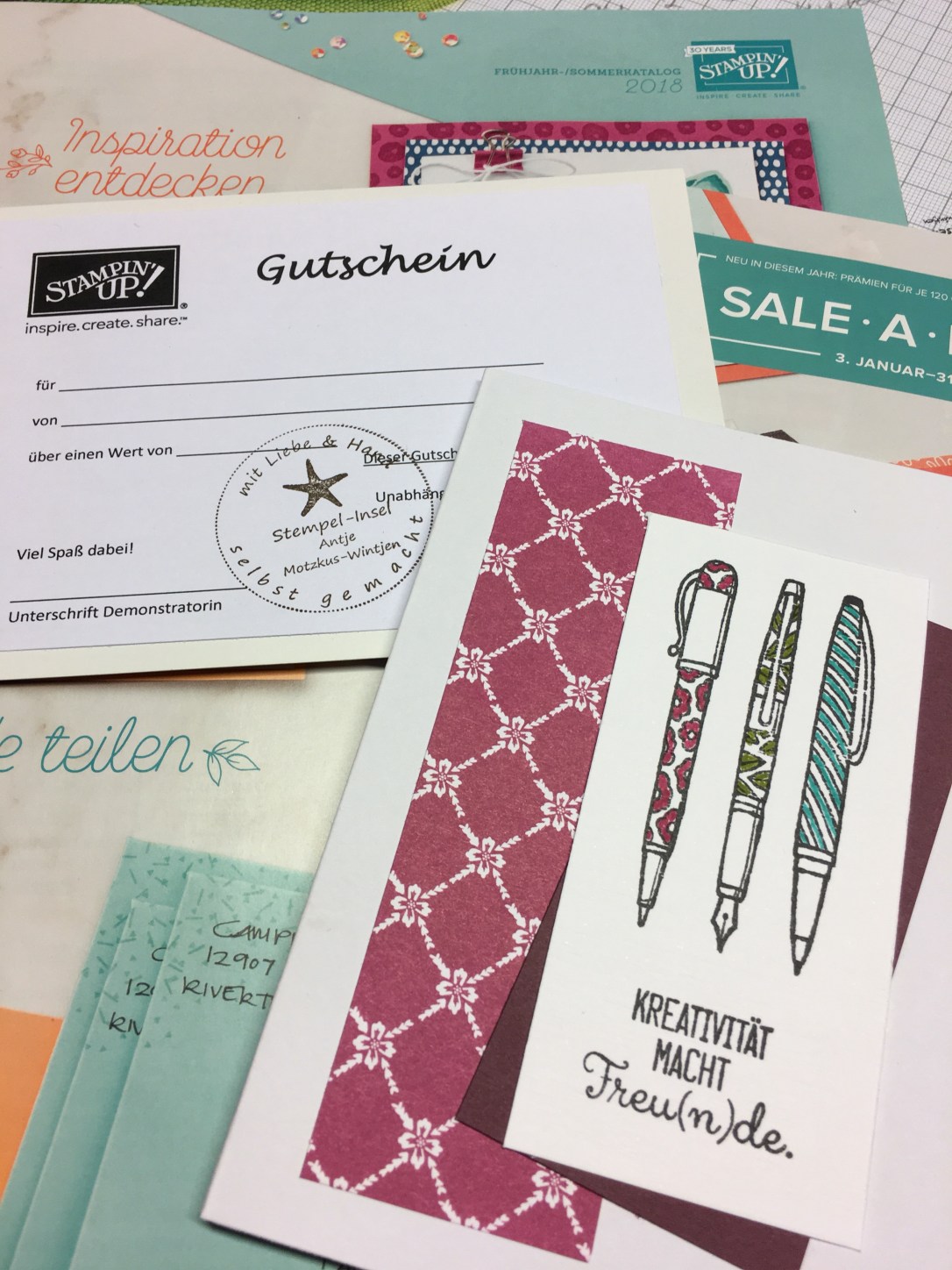 Wie wäre es, diese mit einen Gutschein von Stampin’Up zu füllen? Damit könnt ihr euch viele schöne neue Produkte z.B. aus dem neuen Frühjahrskatalog kaufen – und dann damit kreativ ins neue Jahr starten!