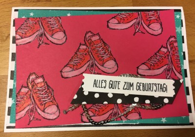 Bei beiden Karten habe ich außerdem das Designerpapier „Einfach spritzig“ – auch aus den Sale-a-Bration verwendet. Ihr seht also, shopping kann sich lohnen! Gerade im Moment.