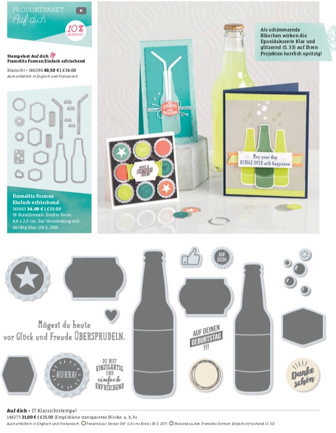 Ihr seht hier das Set „Auf dich“ sowie in Kombination dazu die Framelits „Einfach erfrischend“.