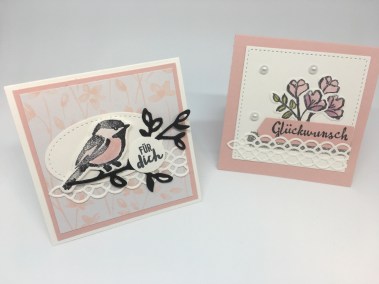 Hier sind noch einmal schöne kleine Karten dabei, die wirklich niedlich sind und vielseitig einsetzbar. Auch die kleinen Spatzen finden sich dort noch einmal – sogar als Doppelpack.
