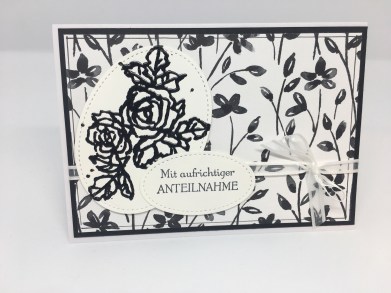 Bei der Reihe „Blütenfantasie“ habe ich allerdings – schon beim ersten Mal als ich es auf der OnStage in Mainz gesehen habe – den Gedanken gehabt, dass man dieses auch gut für die Herstellung von Trauerkarten verwenden kann!
