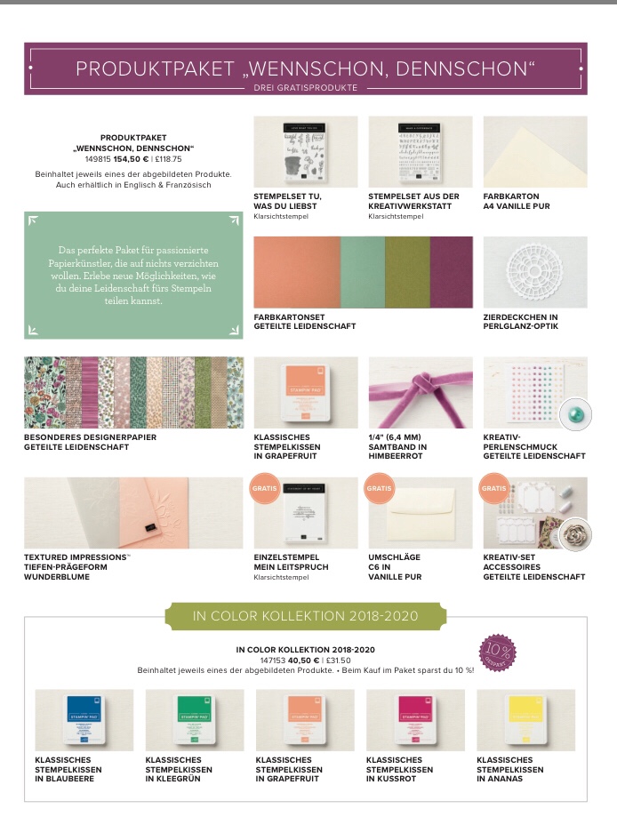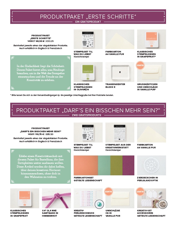 Auch die Produktpakete mit tollen Gratisartikeln gibt es nur bis 31.05. – danach sind die Stempelsets, Papiere und Accessoires zwar einzeln erhältlich, aber ohne den Vorteil der (je nach Paketgröße variierenden) Geschenke.