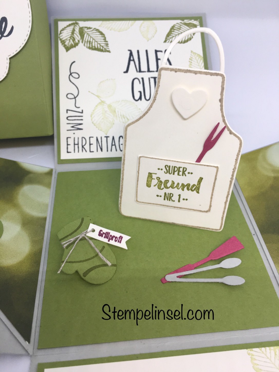 Verwendet habe ich dafür hauptsächlich die Stempelsets „Kittelkreation“,“Alle meine Geburtstagsgrüße“ sowie „Kraft der Natur“ und „Um, die Ecke“. Alle findet ihr im Hauptkatalog.