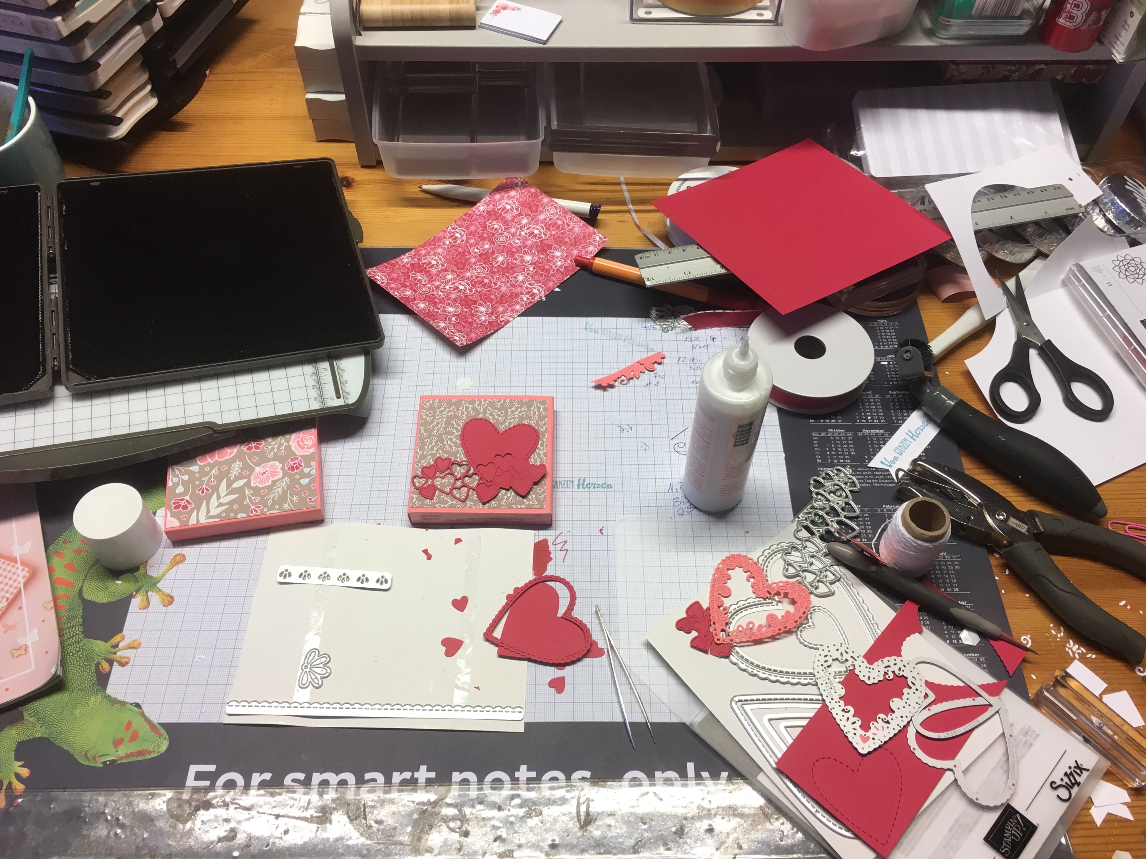 Ein Foto möchte ich nicht unterschlagen – es zeigt das Schlachtfeld Basteltisch….. wie auch immer ich das immer hinbekomme……….