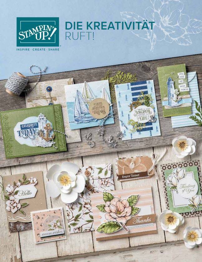 Es wird ein exklusives Stempelset enthalten, und exklusiv heißt, dass es dieses Set sonst nirgends gibt, einen klassischen Stempelspot und Papier- und Bastelmaterial für 12 Karten. Ebenfalls enthalten sind 12 passende, besondere Umschläge, Klebemittel und Accessoires. Die Farben sind schon mal ganz meine! Aquamarin, Blütenrosa, Espresso, Olivgrün, Pfauengrün, Savanne, Vanille Pur und Wildleder. Ihr benötigt lediglich einen Stempelblock.
