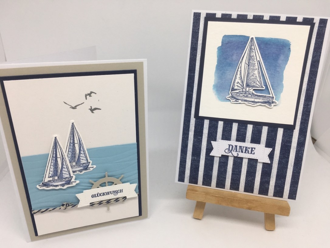 Verwendet habe ich das Stempelset „Setz die Segel“ sowie die passenden Stammformen „Luv und Lee“.