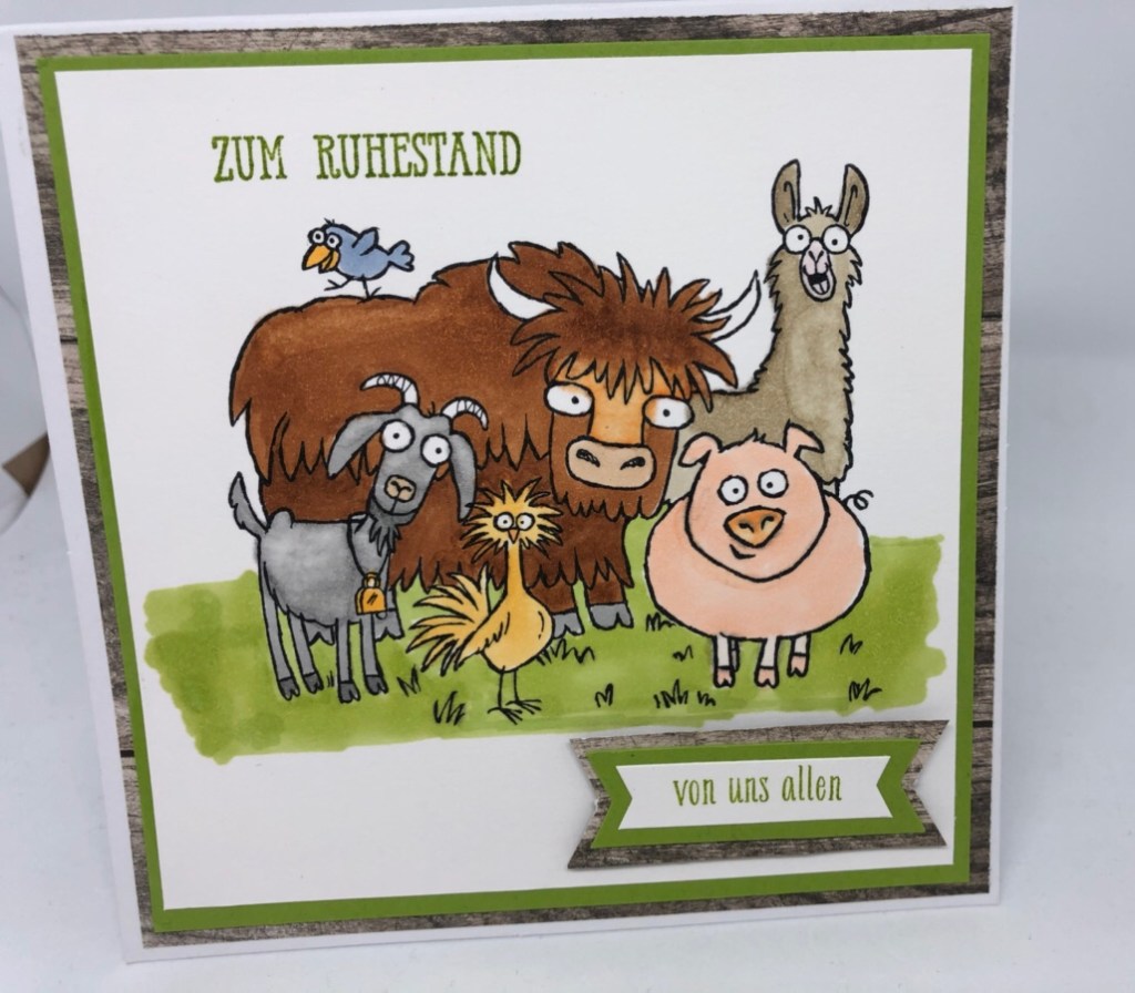 Eines meiner ersten Stempelset seht ihr hier! Als ich jetzt eine Verabschiedungskarte für einen Kollegen machen musste, er unterrichtet die Tierpfleger, fiel mir wieder die „Rasselbande“ ein!