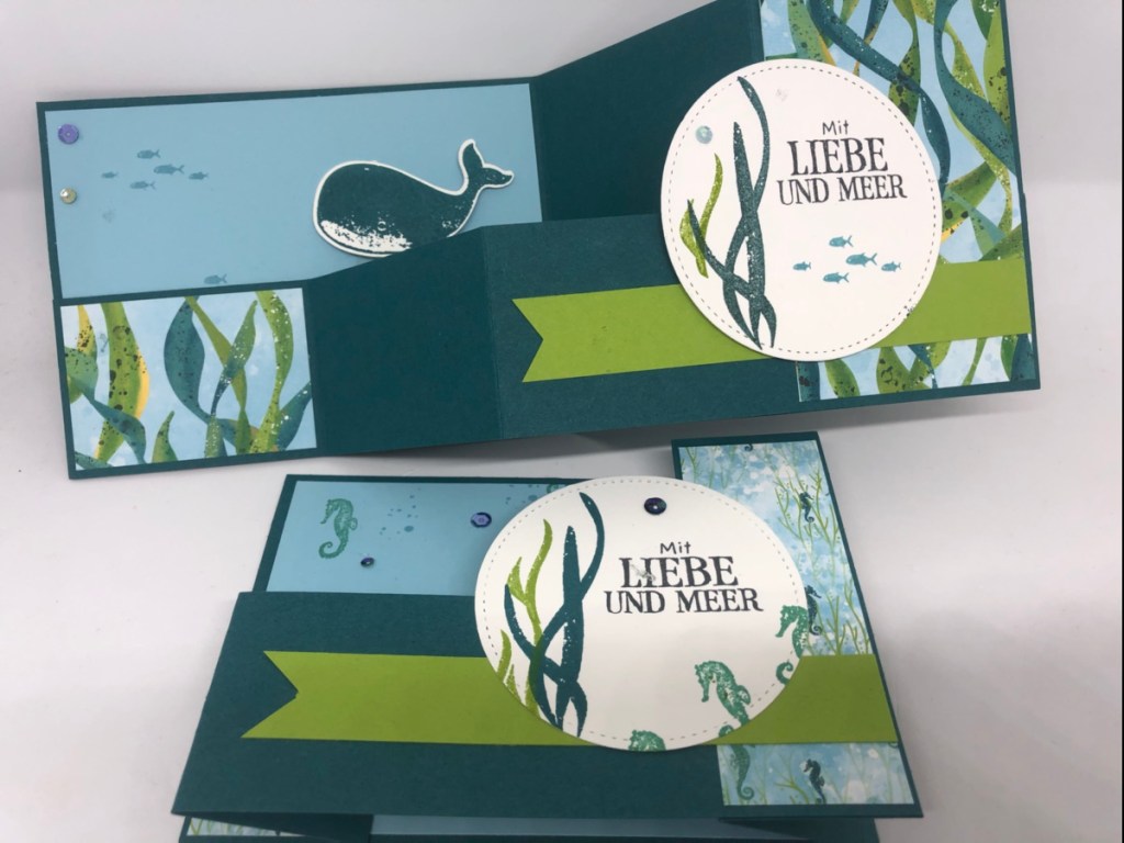 Die Idee habe ich von Julie Davison, sie ist auch Demonstratorin und bastelt diese Karte – allerdings in INCH-Maßen auf ihrem Kanal. Ich habe sie für euch in cm umgeändert!