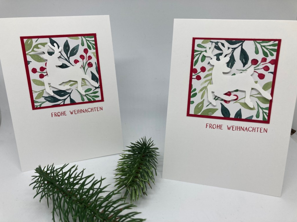 FK in rot: 7 x7 cm; Dp in 6,5 x 6,5x cm, Stanze Hirsch, alle anderen verwendeten Produkte werden im Video gezeigt.